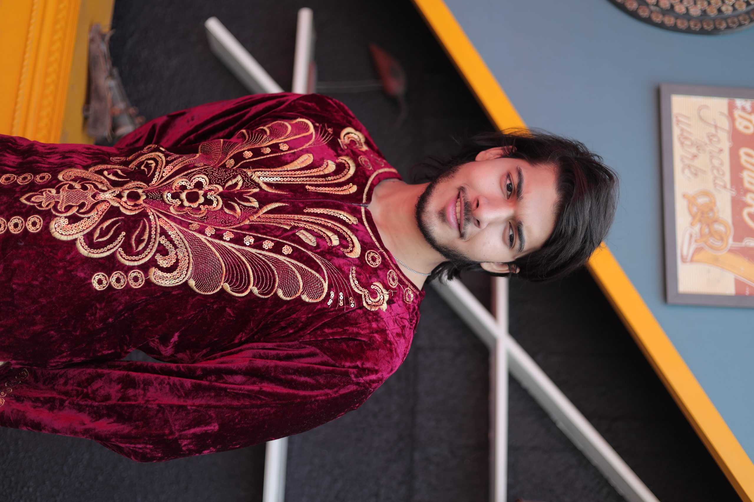 Velvet Made Arabic King Style Dubai Set With Golden Salwar